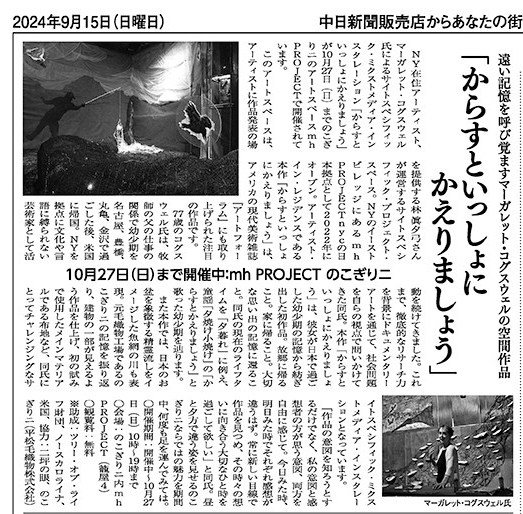 Interview with Margaret Cogswell regarding “The River of Memories/Karasu to Issyoni Kaerimasyo” – A site-specific mixed-media installation at Nokogirini, a repurposed textile factory in Ichinomiya, Japan.